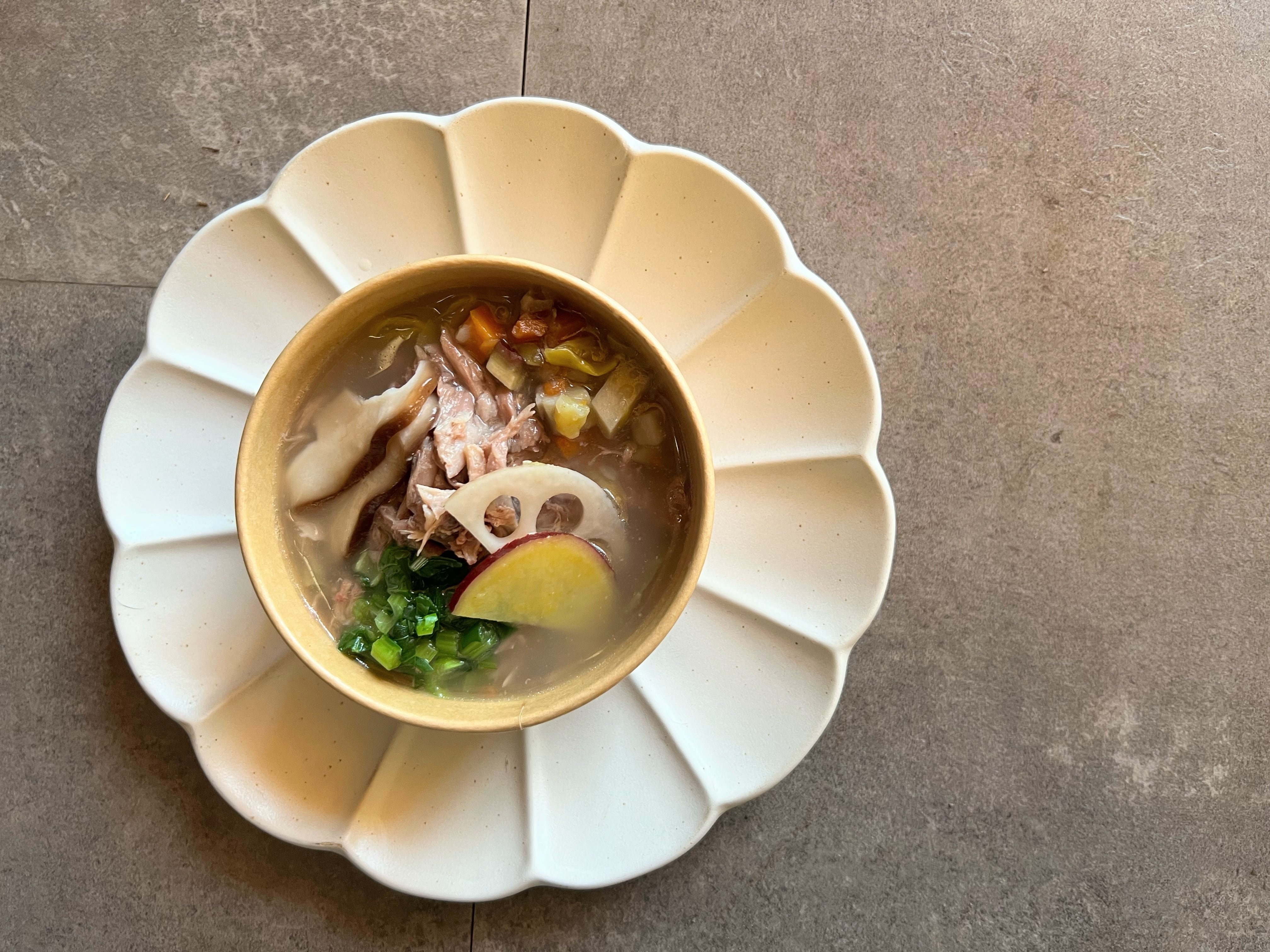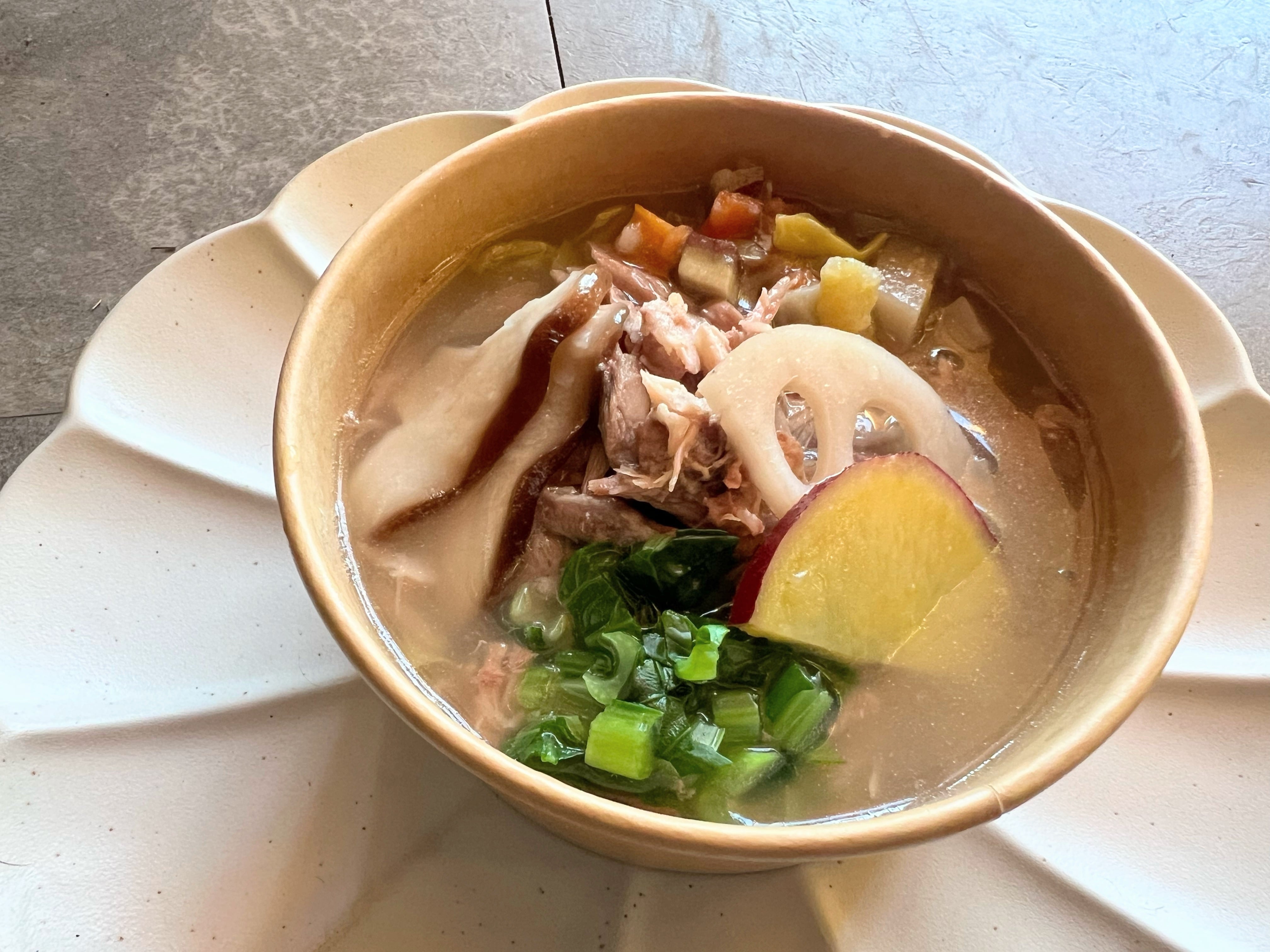 原材料:奈良県産鴨肉 茅野産高原キャベツ 茅野産高原大根 茅野産無農薬にんじん 茅野産無農薬さつまいも 千葉県産紅はるか 茅野産男爵いも 茅野産菊芋 箕輪村産大瀧かぶ 千葉県産れんこん 茅野産高原小松菜