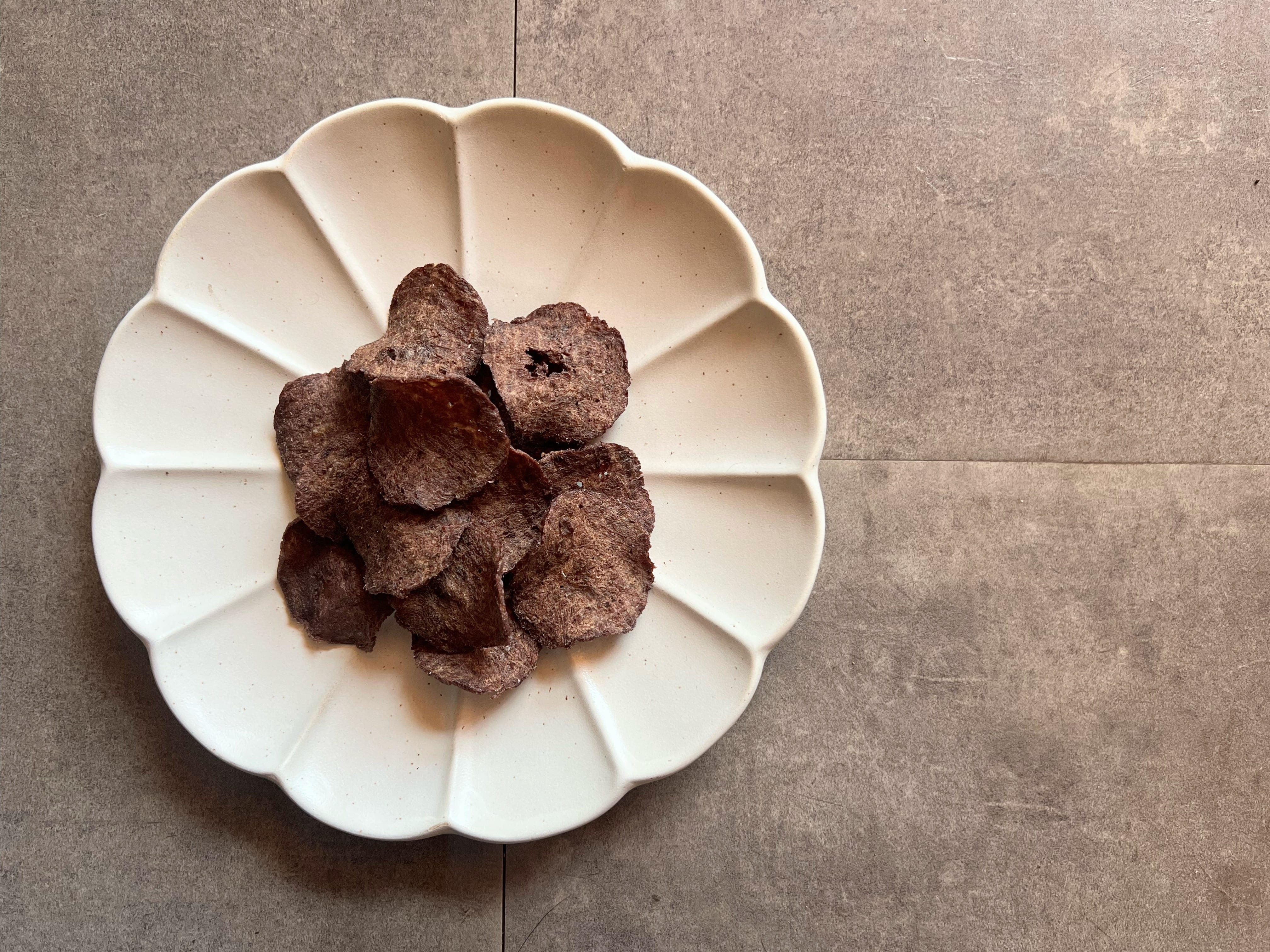 塊のお肉を荒いミンチにしてチップス状に焼き上げました